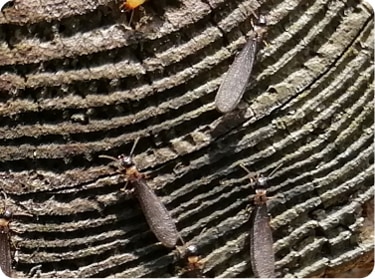シロアリの羽アリは遠くへ移動しません。自宅の周辺でシロアリの羽アリを多数発見した場合は、近くに巣がある可能性が高いでしょう。